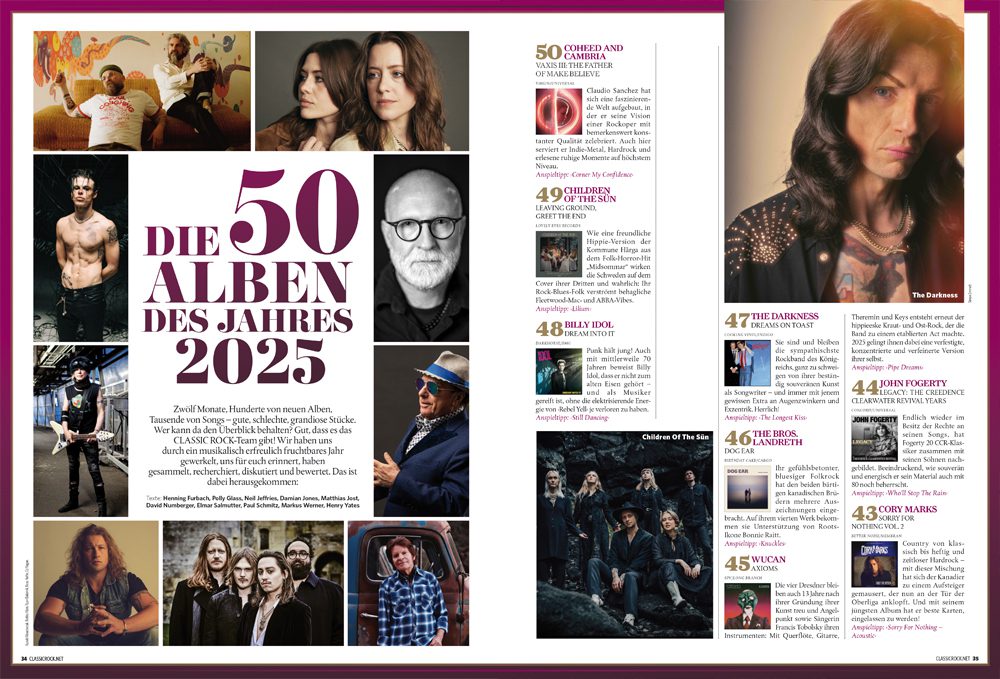 Zwölf Monate, Hunderte von neuen Alben, Tausende von Songs – gute, schlechte, grandiose Stücke. Wer kann da den Überblick behalten? Gut, dass es das CLASSIC ROCK-Team gibt! Wir haben uns durch ein musikalisch erfreulich fruchtbares Jahr gewerkelt, uns für euch erinnert, haben gesammelt, recherchiert, diskutiert und bewertet. Das ist dabei herausgekommen: Die besten 50 Alben des Jahres 2025 inklusive spezieller Interviews mit mit Slash, Wolfgang van Halen, Alice Cooper, Buckcherry, Cheap Trick, Jethro Tull und Steven Wilson! Außerdem teilen unsere Autoren mit euch ihre ganz persönlichen Highlights des Jahres, CLASSIC ROCK gedenkt der 2025 verstorbenen Rockstars und bietet euch wie immer die traditionelle Jahresverlosung mit spektakulären Preisen aus der Welt des Rock!